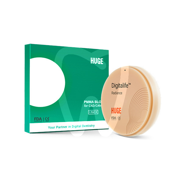 Universal PMMA disc for milling machines with Ø 98.5mm. 4-layer disc, single coloured, for long-lasting temporary anatomical crowns and bridges.